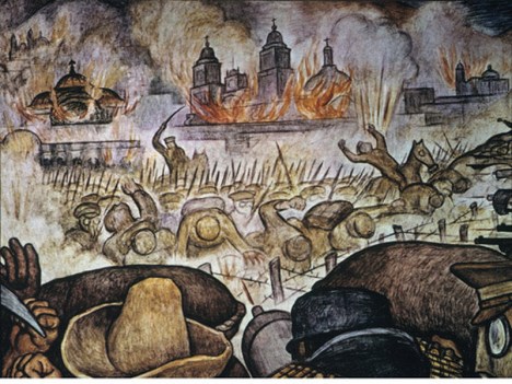 RIVERA: MEXICAN REVOLUTION. – ‘History and Perspective of Mexico.’ Detail of a mural painting by Diego Rivera (1886-1957) depicting a scene from the Mexican Revolution.. [Fine Art]. Retrieved from Encyclopædia Britannica ImageQuest.